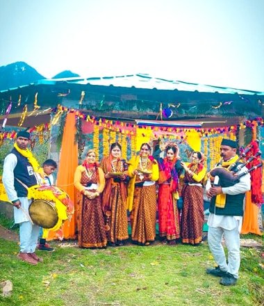 Wedding performed local touch with local traditions, (Maangal Geet), Local Instruments (Dhol , Thmao, Bagpiper on Demand Basis)